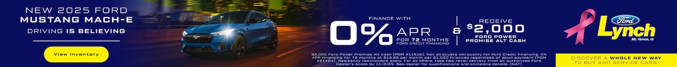 If you want to see what the buzz is all about when it comes to the latest models, Lynch Ford - Mt. Vernon Inc. is the place to go. If you're ready to buy a new F-150, Escape, Explorer, Bronco Sport or Ranger, what an exciting time to do so. Ford vehicles are gaining in popularity with the new features that redefine the driving experience, and we can help you learn more about them. Whether it's the lane departure warning, the park assist or wireless features, the feedback on the new lineup is tipping the scale in its favor. And now, you don't even have to come to our showroom in Mount Vernon to see what we've got. Simply go to our website and take a look from the comfort of your home. The new Ford attributes are sleek, sophisticated, cultured and most importantly, ready to go. With vacations on the horizons, our vehicles are a great comfortable, fuel-efficient choice for families in Iowa. Once you've spotted your choice, come on in and take it off the lot.