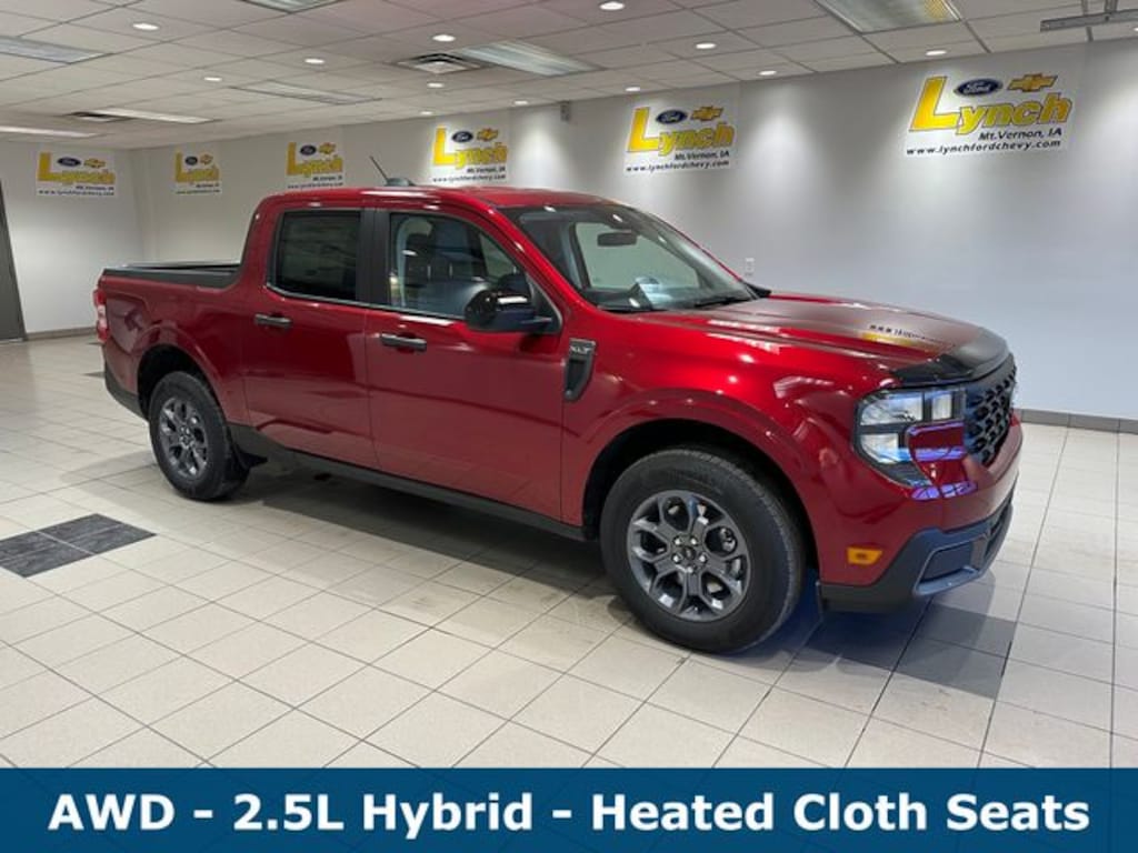 Experience the 2025 Ford Maverick XLT Hybrid AWD at Lynch Ford Chevrolet. For more information or to schedule a test drive, call 319-895-8500 or visit 410 Business 30 SW, Mount Vernon, IA 52314. Research features, performance, and real-world utility with confidenceâ"your next informed automotive decision begins here. Price includes: $1000 - Retail Customer Cash. Exp. 03/31/2026