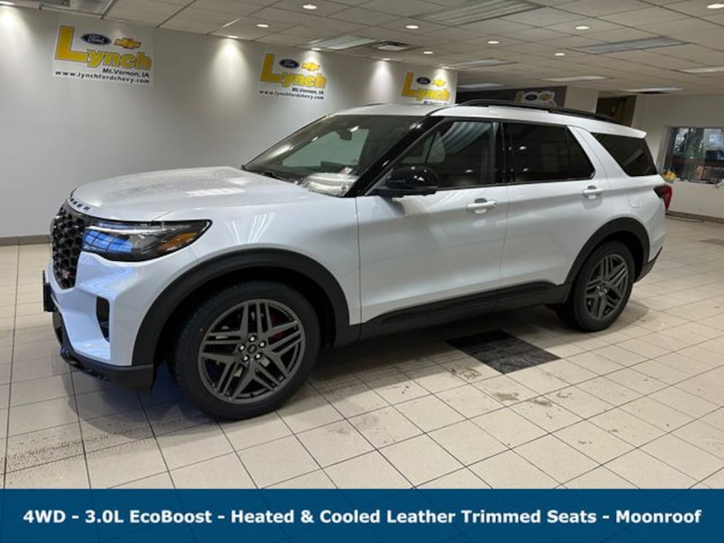 Contact Lynch Ford Chevrolet at 319-895-8500 or visit 410 Business 30 Sw Mt Vernon, IA 52314 to learn more about the 2026 Explorer ST. Experience firsthand how smart engineering and thoughtful features deliver lasting value and low total ownership cost for years to come. Price includes: $1000 - Auto Show Retail Bonus Cash. Exp. 03/02/2026 $1000 - Retail Customer Cash. Exp. 03/02/2026
