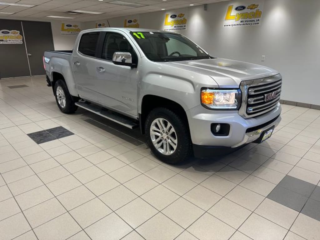 Contact Lynch Ford Chevrolet at 319-895-8500 or visit us at 410 Business 30 SW, Mount Vernon, IA 52314, to explore the 2017 GMC Canyon SLT. Our team is ready to assist with your needs, ensuring a seamless buying experience. Discover why Lynch Ford Chevrolet is a trusted name for quality vehicles in the community.The 2017 GMC Canyon SLT, with its Quicksilver Metallic finish, stands out as a robust and versatile midsize truck. This 4WD Crew Cab is equipped with a V6 engine and an 8-speed automatic transmission, offering a blend of power and efficiency. Ideal for those seeking a reliable daily driver with occasional towing needs, the Canyon fits a variety of lifestyles.